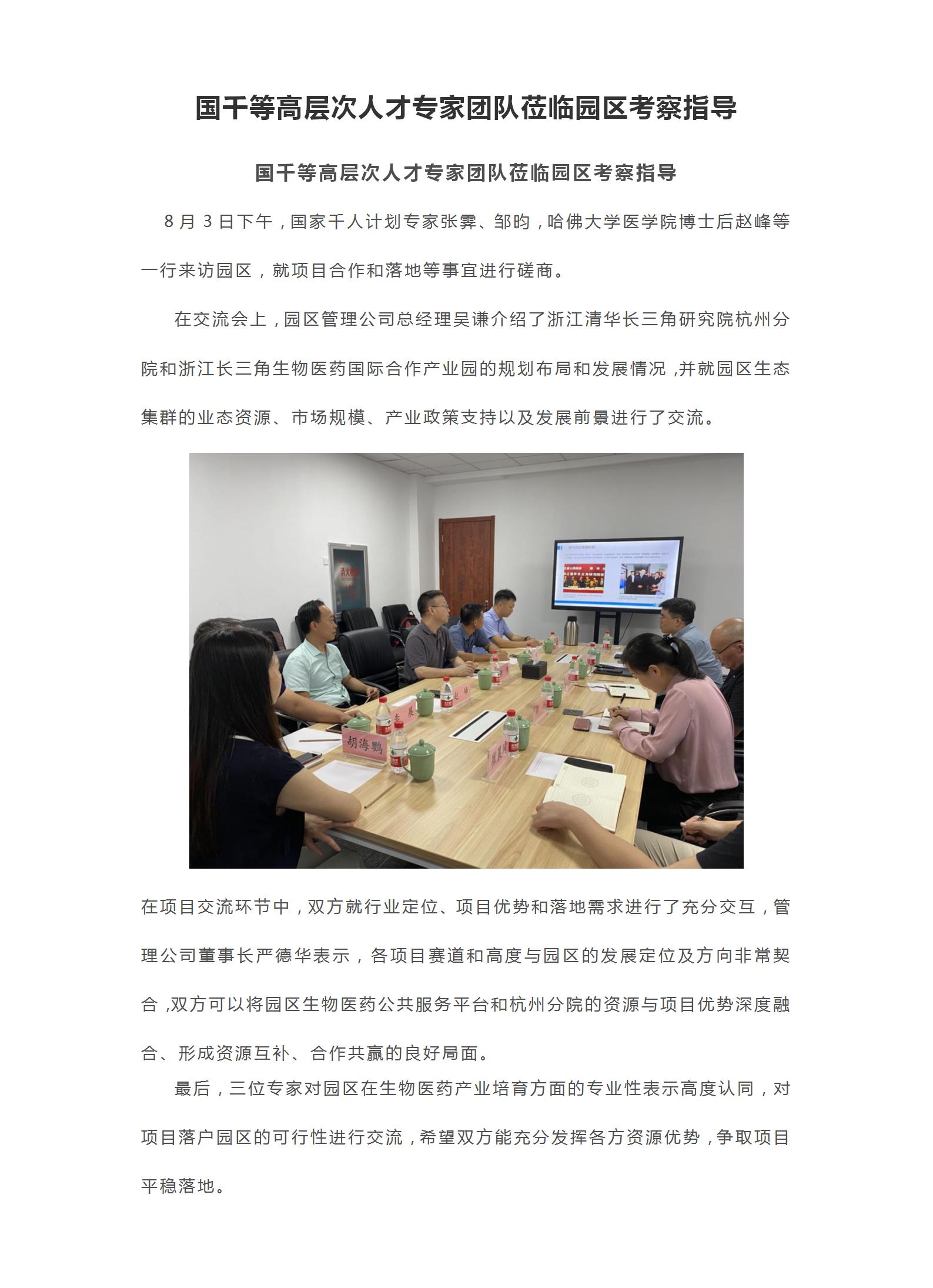國千等高層次人才專家團隊蒞臨園區(qū)考察指導